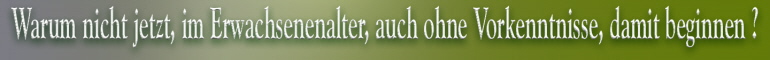 Wichtig ist mir nur, daß Sie Begeisterung und Leidenschaft für Musik mitbringen - und wenn es bisher auch "nur" das Hören von Musik war. Häufig geht es beim Instrumentallernen darum, überhöhte Ansprüche, übertriebenes Leistungsdenken und andere Blockaden zu überwinden. Ich möchte Ihnen dabei helfen, zum Wesentlichen zu gelangen: Das Musik SPIEL sein kann und FREUDE bereiten sollte !